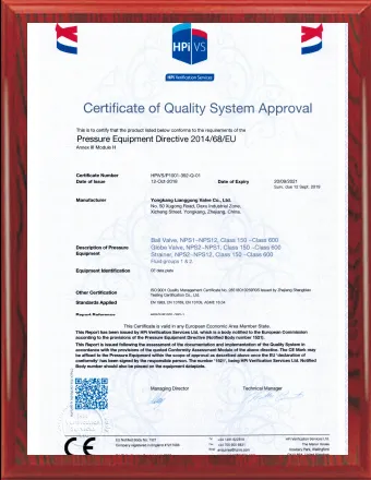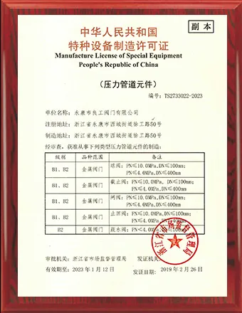 حصلت شركتنا على شهادة نظام إدارة الجودة الدولية ISO9001، وشهادة نظام إدارة البيئة ISO14001، وشهادة نظام إدارة السلامة 28001. كما حصلنا على ترخيص TS لتصنيع المعدات الخاصة، ونحن عضو في جمعية الصمامات الصينية.